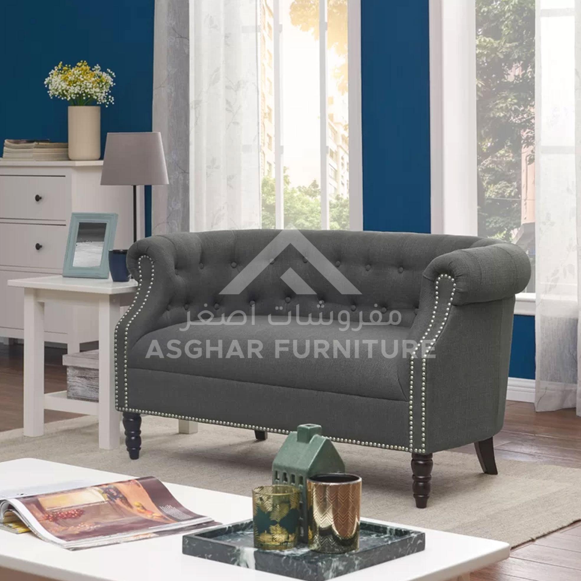 This Rolled Arms Loveseat by Asghar Furniture brings a traditional element to your den, library, or home office. Upholstered with inviting fabric and filled with foam, its tight back and rolled arms feature deep button tufting as a nod to the iconic piece of furniture.